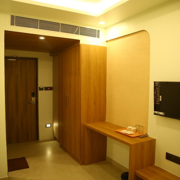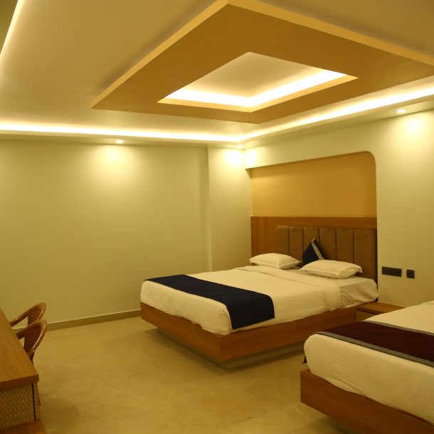 – Modern Amenities – Complimentary Wi-Fi, 24×7 service, curated dining, and serene interiors.